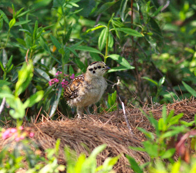 When I arrived at the meeting place, there was a quick change of plans as my DEC friends, while driving over, had found a female grouse with 5 young on a nearby road. Knowing how much I wanted to see the bird, they had thoughtfully, left someone behind to track the bird, while the others came to get me. So within 2 minutes of arrival, the promise of a long day tracking down secretive grouse turned into a quick drive and "road-side" views of a Spruce Grouse family. Why couldn't it be this easy the other five times I'd tried for this species?